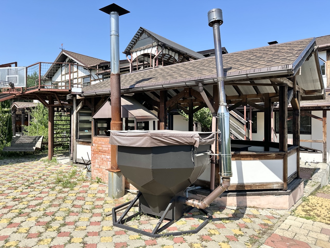 Зона отдыха: беседка с мангалом и банным чаном на дровах под открытым небом