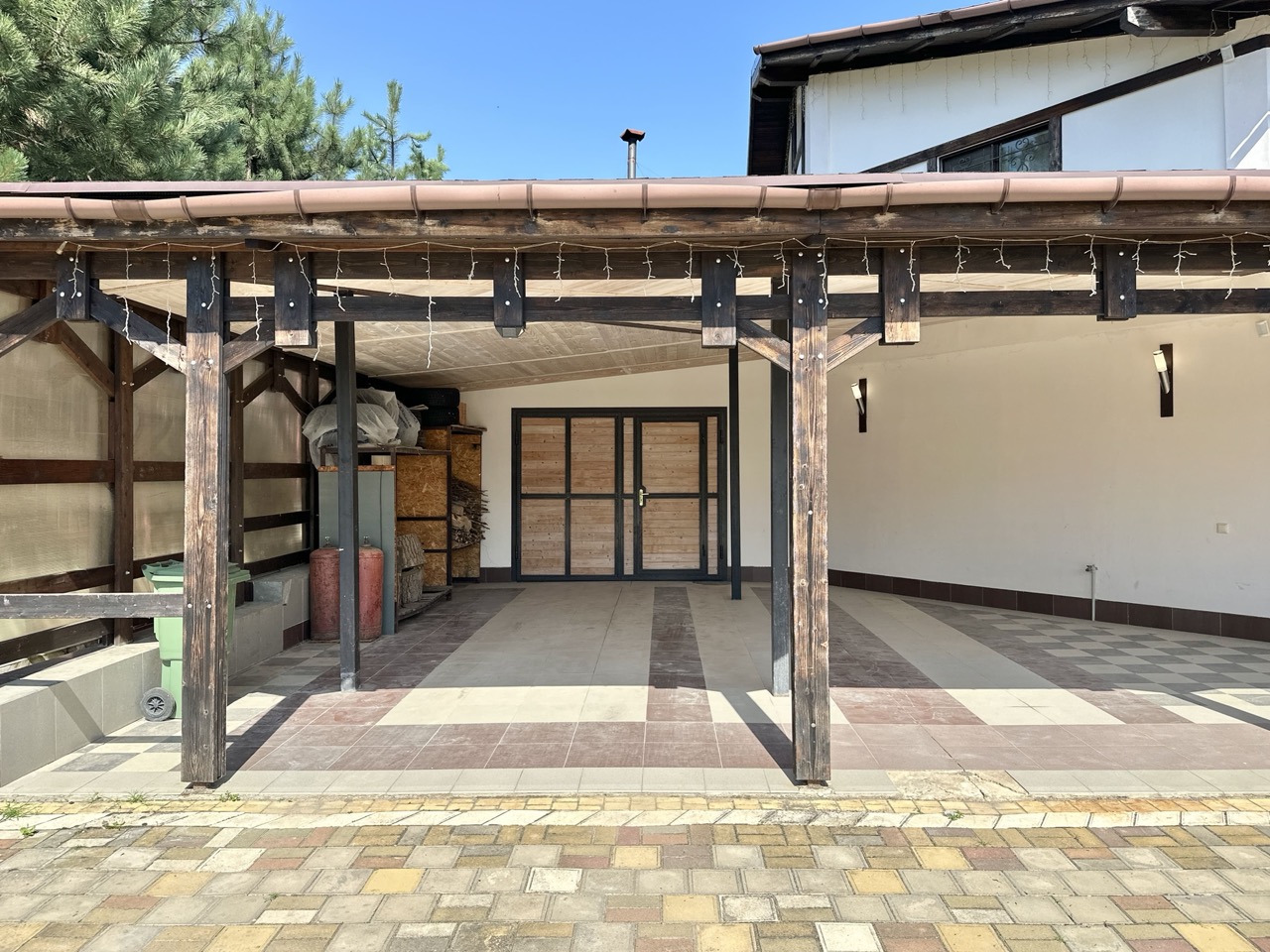 Отдельно: навес для хозяйственных нужд 18×11 м, уличный туалет и мастерская